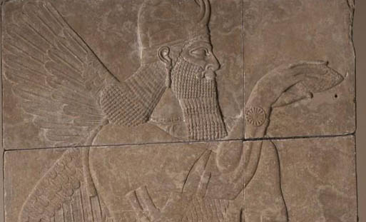 Artwork details: Relief With winged genius, alabaster, 883-859 BC (Neo-Assyrian).